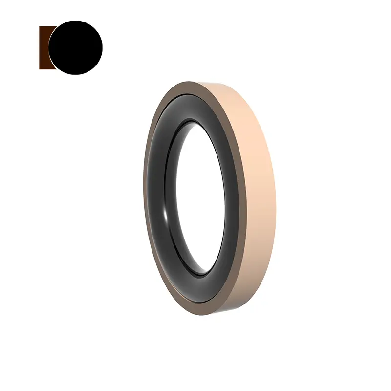 Tá an séala seo comhdhéanta de fháinne ina saothraítear rónta cos déanta as ábhar PTFE modhnaithe agus fáinne O-fáinne. Déantar an fáinne O-chomhbhrúite a réamh-chomhbhrú chun fórsa clampála a ghiniúint chun séalaithe a bhaint amach. Méadaíonn fórsa clampála an tséala faoi bhrú, is é sin, is amhlaidh is airde an brú, is amhlaidh is fearr an séalaithe. Ós rud é go nglacann an fáinne duillín le struchtúr rib taobh-chos-chruthach, ní chuirfear brú ar an bhfáinne O-OC agus is féidir leis brú ard agus ard-ard a sheasamh.