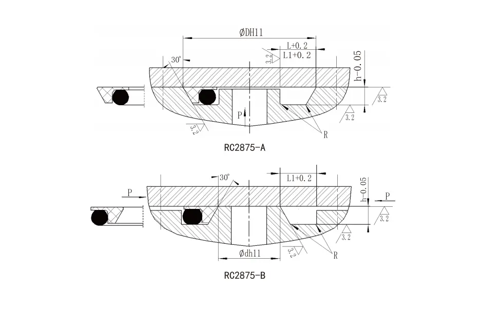 De réir coinníollacha oibre éagsúla, tá samhlacha fo-roinnte déanta againn chun go roghnóidh tú as: RC2871 Sraith (fáinne ina saothraítear rónta uillinne agus fáinne rubair O-chruthach) roinnte i gcineálacha A agus B chun déileáil le cásanna brú éagsúla; Tá sraith RC2872 (fáinne ina saothraítear rónta C agus fáinne rubair O-chruthach) oiriúnach do shéalú brú statach; Déanann RC2873 (fáinne rónta uillinne treisithe agus fáinne rubair O-chruthach) speisialtóireacht ar shéalaithe statach brú-ard; Cinntíonn RC2874 (fáinne saothraithe Y-chruthach agus fáinne rubair O-chruthach) cobhsaíocht ina saothraítear rónta ard-ard; Tá sraith RC2875 (fáinne ina saothraítear rónta coise agus fáinne rubair O-chruthach) roinnte i gcineálacha A agus B chun freastal ar riachtanais rónta statacha éagsúla.