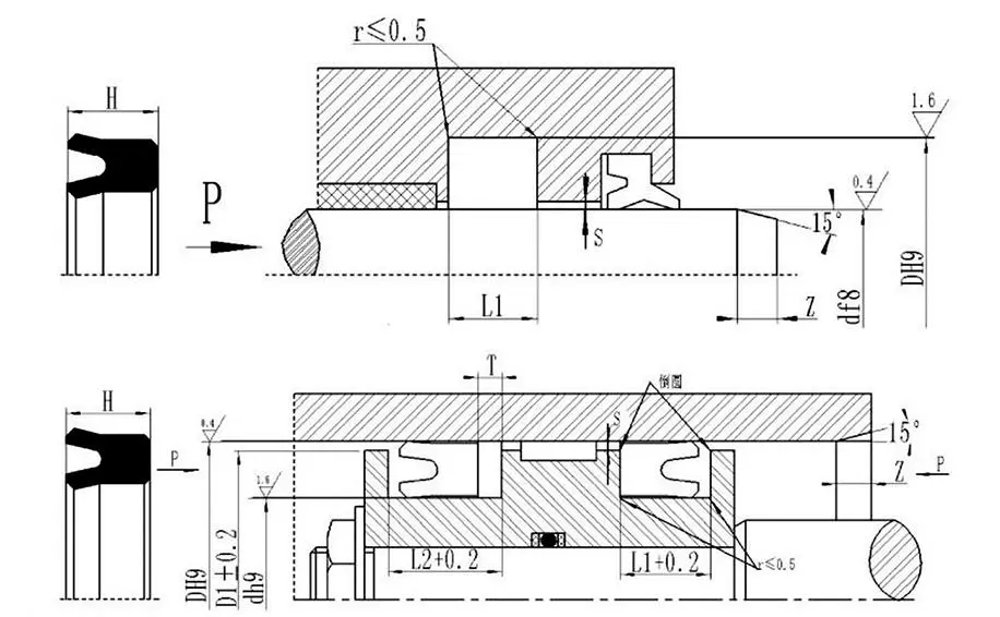 Séala siméadrach é U-Séala UHS le haghaidh feidhmeanna tollaidh agus seafta araon. Tá trasghearradh níos lú aige agus is féidir é a shuiteáil i gcromáin dhílis. Tá gá le fáinne coinneála ag an bhfréamh nuair a úsáidtear é faoi bhrú 16-32 MPa.