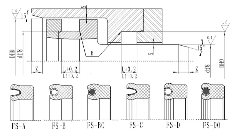 Is séala fuinnimh earraigh uilíoch ardfheidhmíochta é ár Séala Fuinnimh Earraigh Uilíoch FS le haghaidh poll seafta le struchtúr siméadrach agus poll seafta uilíoch, atá oiriúnach do chásanna tionsclaíocha éagsúla. Tá an tsraith seo de tháirgí roinnte i gcineál, cineál B, cineál BO, cineál c, cineál D agus cineál a dhéanamh. Ina measc, glacann BO Cineál agus Cineál le teaglaim phlaisteach ardfheidhmiúil agus brataithe brataithe brataithe, a bhfuil friotaíocht iontach sna meáin aige; Cineál C, Cineál D agus Cineál Do Ghlactar le struchtúr liopa fiacla chun an cumas ina saothraítear rónta a fheabhsú, go háirithe atá oiriúnach do dhálaí oibre ardbhrú agus brú níos mó ná 40MPA.
